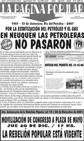 10 - ARGENTINA, NEUQUÉN: LA PÁGINA POPULAR, POR RESISTENCIA LAUTARO.